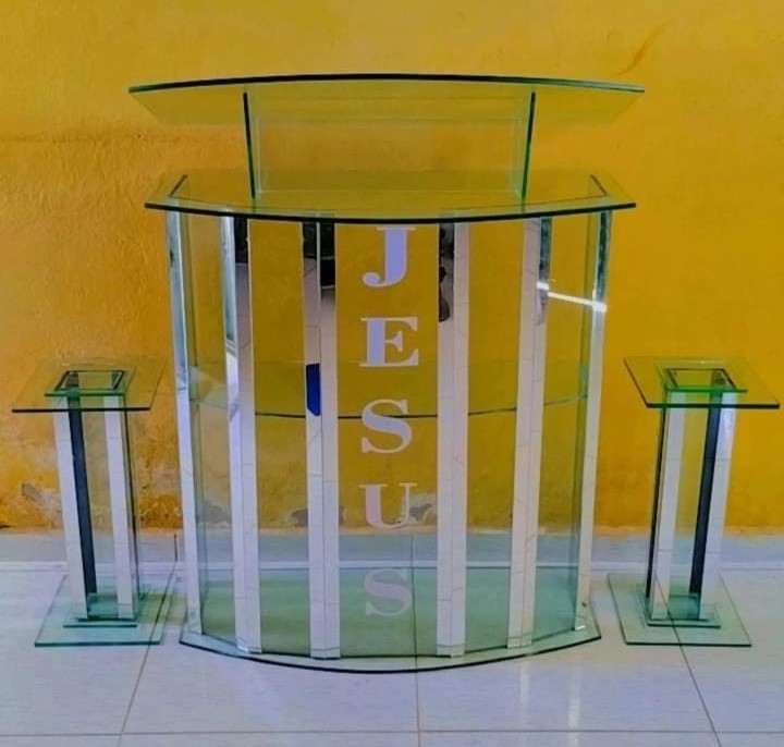 PÚLPITO DE VIDRO GRANDE COM COLUNAS