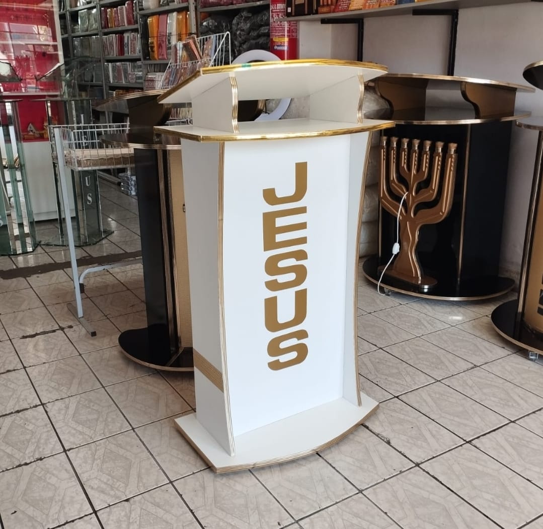 PULPITO BRANCO E DETALHES DOURADO C/NOME JESUS